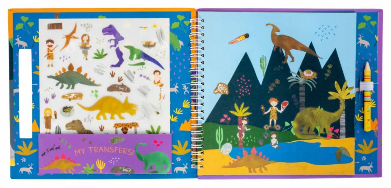 Step back in time and let your child’s imagination run wild with the Floss & Rock Transfer Fun – Dinosaur. This engaging activity set is a doorway to the ancient world of dinosaurs, offering over 150 transfers for endless storytelling and scene creation. This set encourages creativity, storytelling, and fine motor skills.