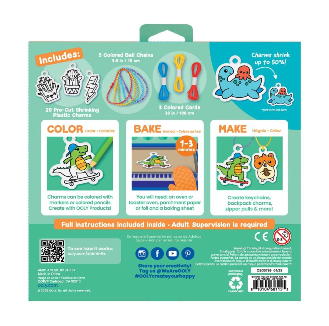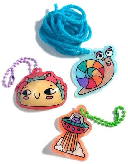 Elevate a dull afternoon into a fantastic time with this shrink art kit! It includes 20 whimsical charms, three cords in different colours, and five ball chains in various shades. All you need to bring to the table are markers or coloured pencils and your trusty oven. Crafted from lightweight plastic, these charms are perfect for adorning your backpack or keychain.
