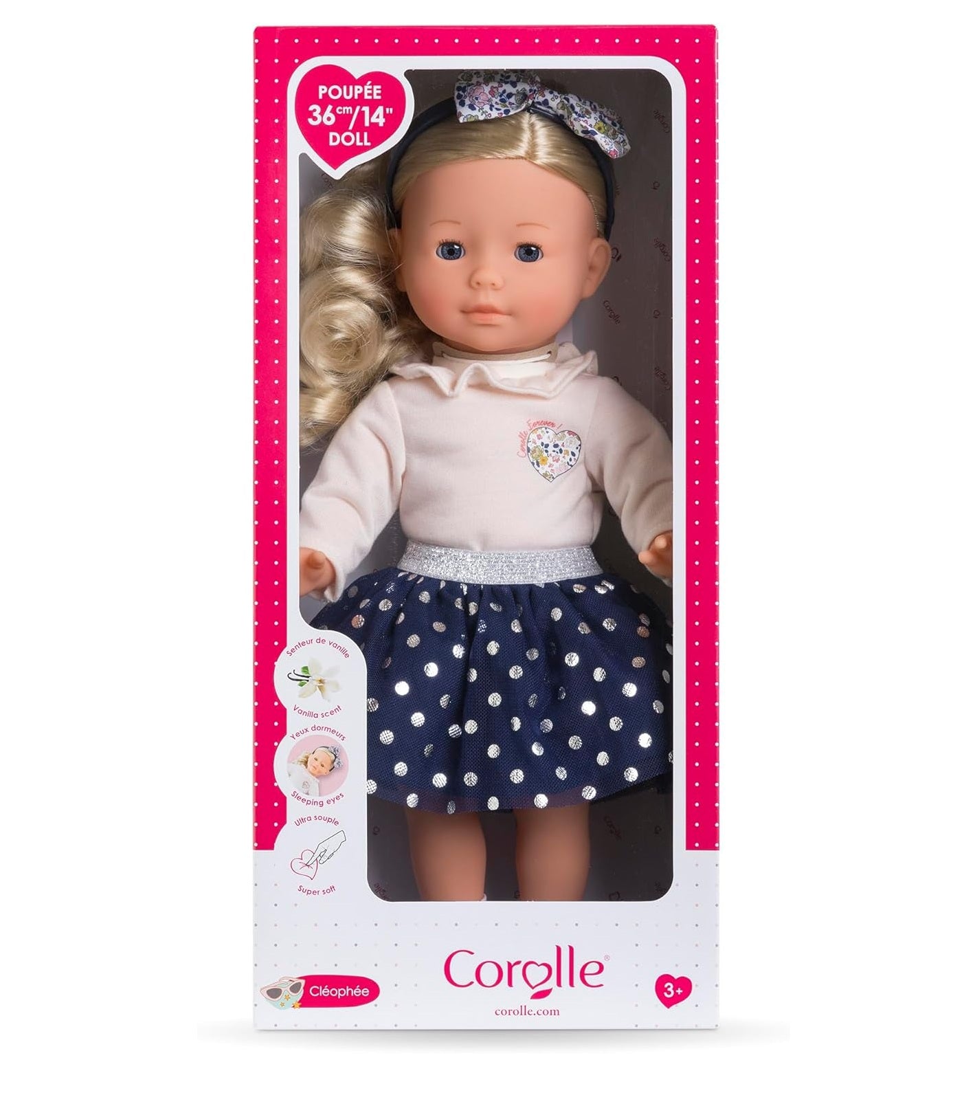Cleophee is a 36cm doll to dress, with a soft body and long hair that's easy to style. Her face, arms and legs are made of soft-to-the-touch vinyl that's delicately scented with vanilla. Her soft body is easy to hold and handle, and her sleepy eyes close when she is put on her back.