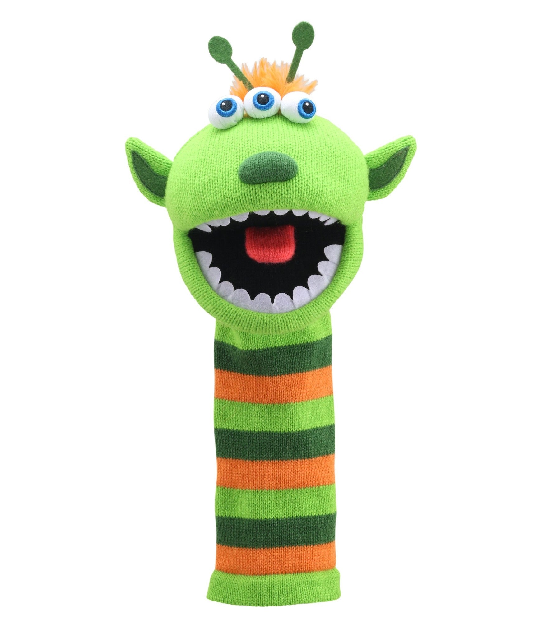 With his playful alien-inspired design, three eyes, and brightly coloured antennae, Narg is truly out of this world! Now made from recycled materials, he features embroidered eyes and a friendly face, making him a standout in the Eco Sockette collection, loved by both adults and children.