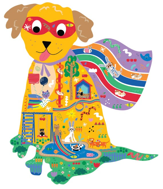 You'll love building this super cool doggy (complete with a mask and a rainbow cape!) and all of their friends in this fabulous 40 piece jigsaw. With chunky puzzle pieces and shiny foil details, this jigsaw will enhance problem solving skills, improve hand/eye coordination and help develop memory and concentration. The puzzle is printed using soy inks, made from recycled materials and is fully recyclable.