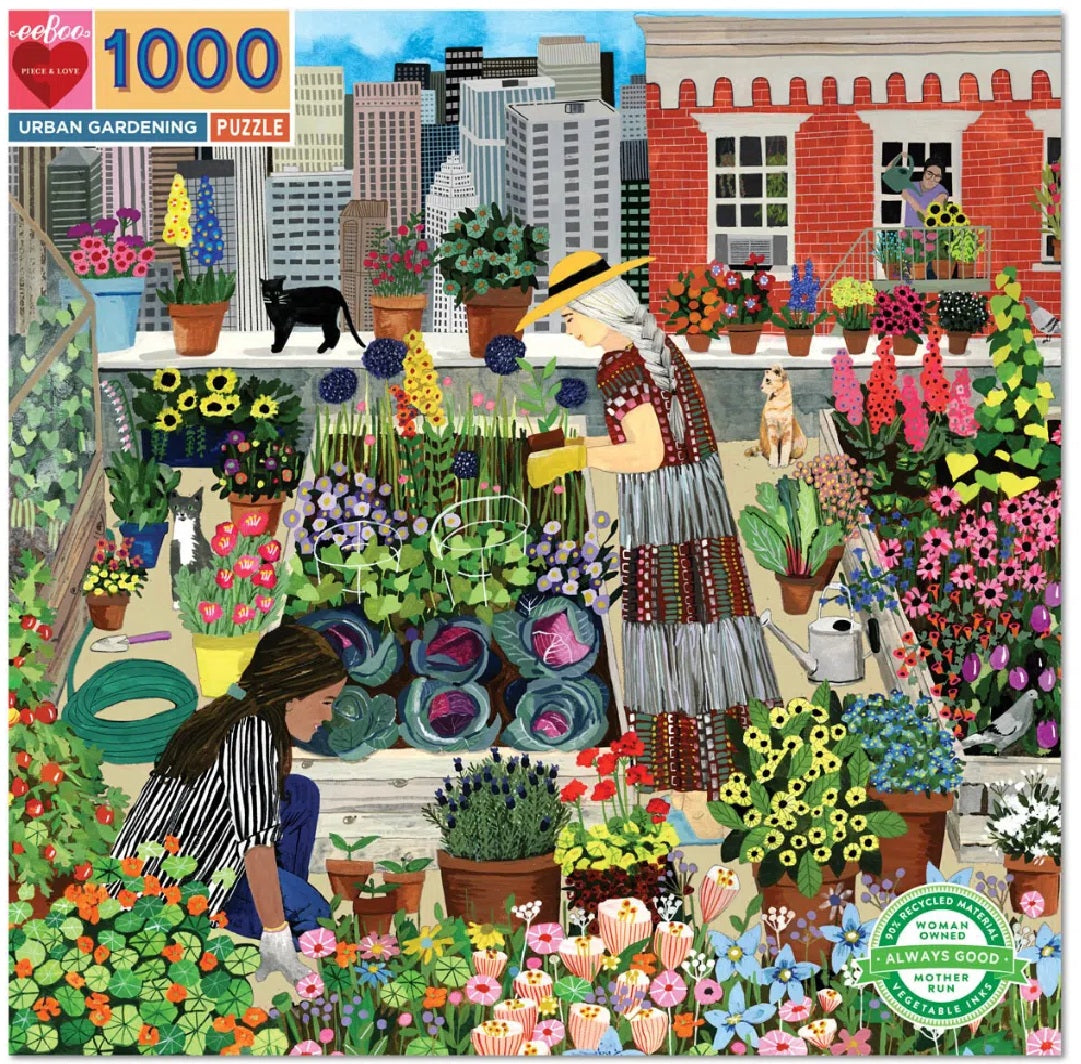 Below, the city honks and hums. Above, we glove our fine green thumbs. Rooftops bloom with food and flowers. Thanks to weeding, sun and showers. Something special's in the air; a garden can be anywhere!