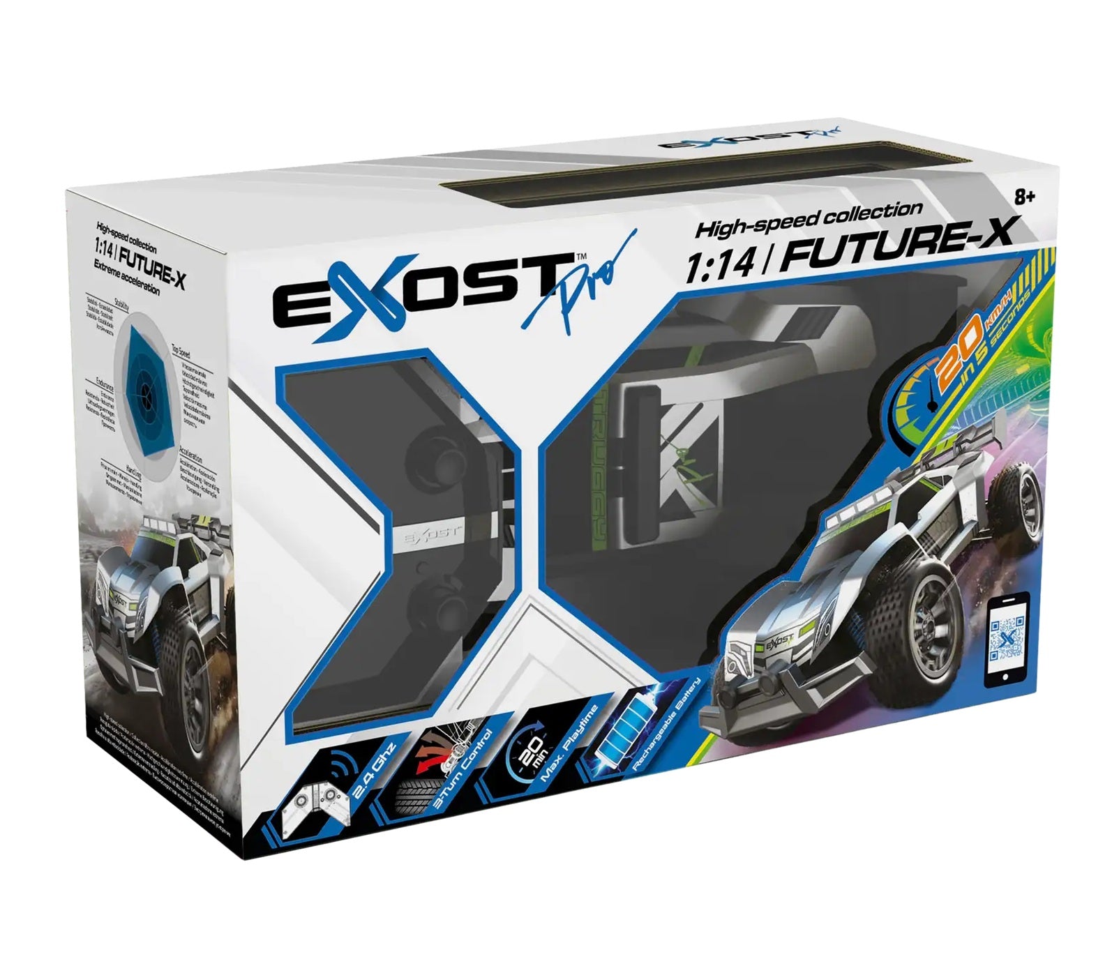 Exost High-Speed collection. 1:14 Future-X. 2.4 Ghz, 3-Turn Control, Max Playtime, Rechargabel battery, Reach High speeds of 20km/h in 5 seconds!