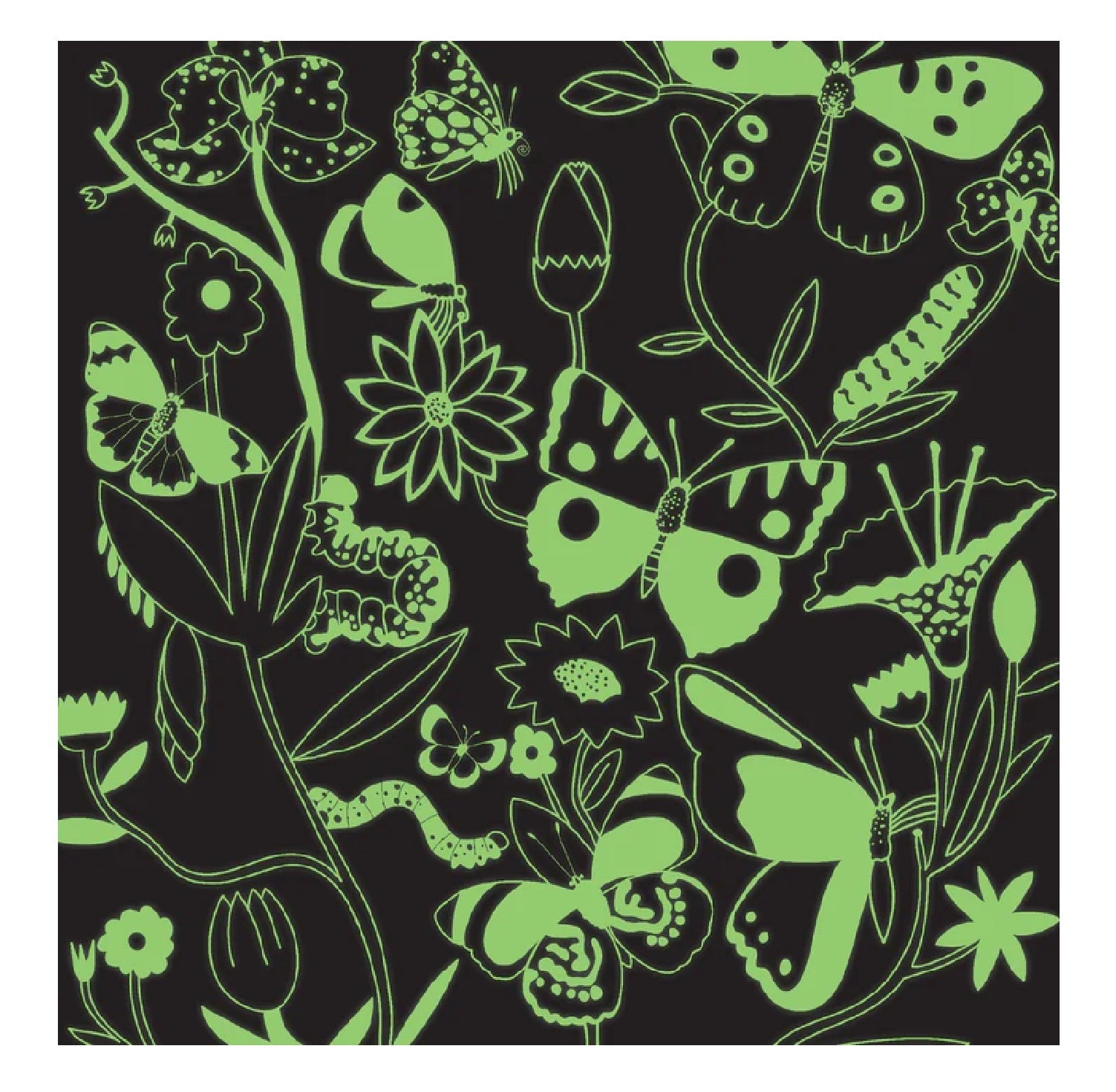 Piece together a colorful nature scene with Mudpuppy's Butterflies Illuminated 500 Piece Glow in the Dark Family Puzzle. After you complete the puzzle, turn out the lights to reveal glowing caterpillars and other butterfly surprises!