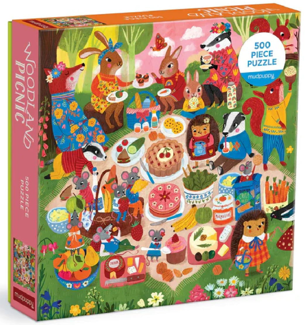 Join all the woodland creatures great and small for a delicious picnic with Mudpuppy’s Woodland Picnic 500 Piece Family Puzzle. Mudpuppy puzzles are packaged in matte-finish sturdy boxes, perfect for gifting, reuse, and storage.