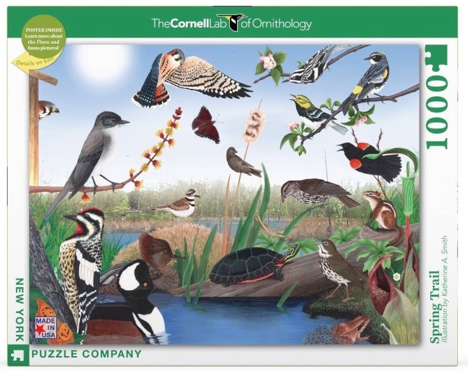 Spring is a wonderful season for a walk in Sapsucker Woods. The swallows circle in tight spirals above the pond and nesting geese bicker at its surface, proclaiming spring's arrival. As birdsong rings throughout the wood, nature settles in to begin anew the ancient, earnest cycle of life. (Descriptive poster included).