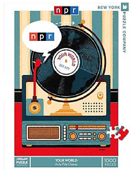 NPR distills Earth's spin down to a reliable stream of enlightened audio, 365 rotations per year. I liken this to the idea of a globe spinning like a record, with NPR as the record needle transforming the world's happenings into audio content. Artwork by Philip Cheaney, commissioned by National Public Radio.